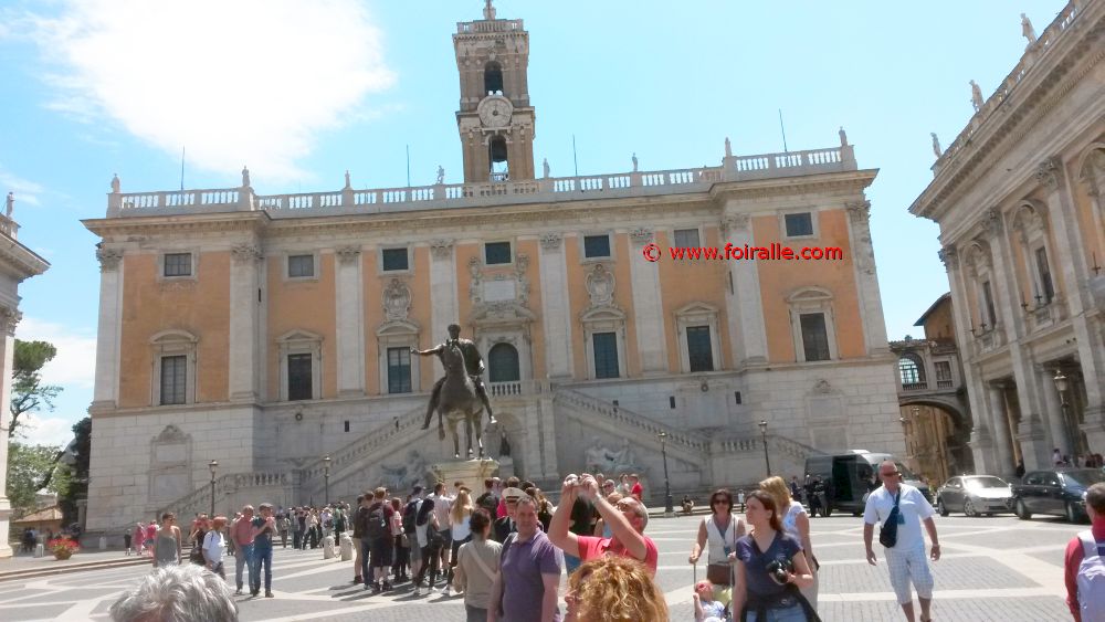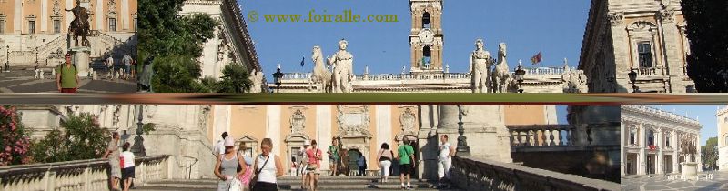 Les trois palais municipale et les deux musées capitolains (due Musei capitolini) , la statue de Marc Aurel, la place du Capitole sont des symboles historiques de la religion qui sont construits sur les restes des temples de Jupiter, de Junon et de Minerve, et politique de la Rome antique.