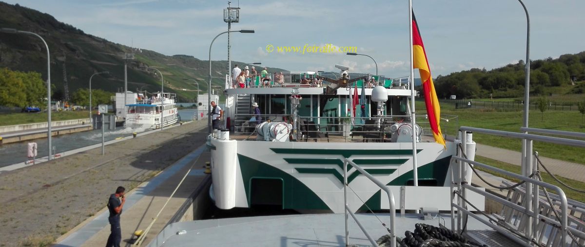 Une Première pour nous deux, c'est le passage écluse sur la Moselle voire vidéo entrée dans une écluse Moselle dans l'allée >>>>