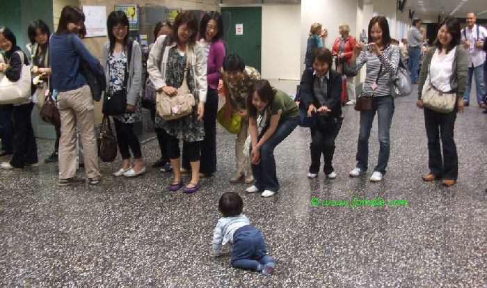 et voilà les émotions des voyageurs asiatiques explosent en cris en appels de joie au petit enfant qui le regardent certaines ont pris les cameras pour prendre des photos de souvenirs et parmi elles aussi j'ai pris l amienne tout en faisant quelques photos pour öl'enfant dont sa mère me la confiait pour quelques minutes avant de le reprendre